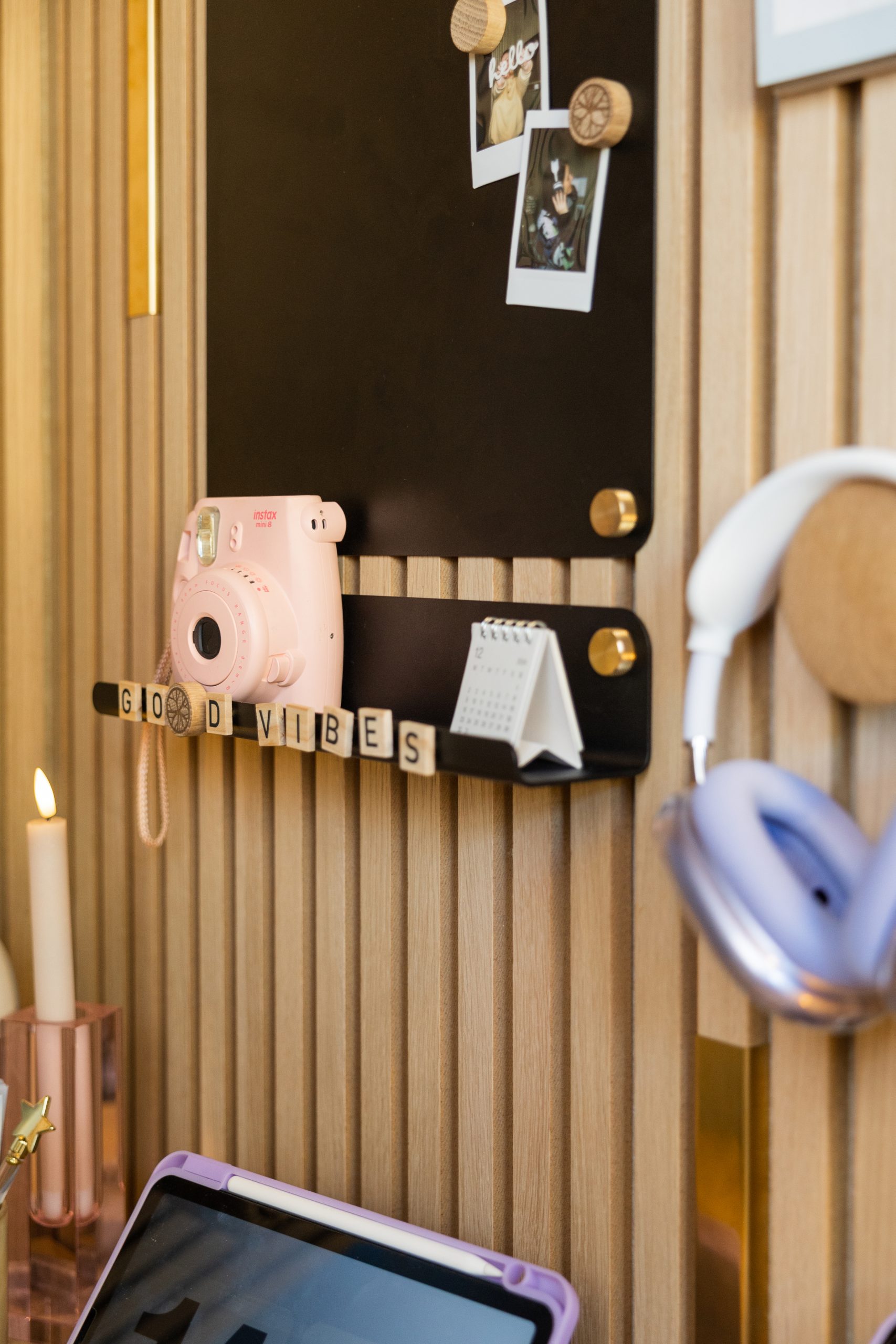 Laten we beginnen met een accessoire dat echt multifunctioneel is: het magneetbord. Perfect voor als je geen gaten in je Akupanels wilt maken, maar wel je favoriete foto’s, to-do lijstjes of herinneringen op een mooie manier wilt laten zien.