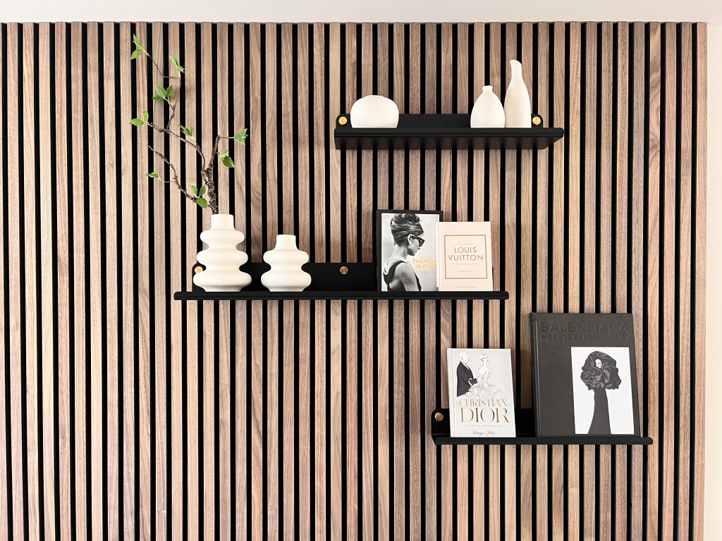 Met de juiste wandplanken maak je van je Akupanels een echt statement. Ze zijn eenvoudig te bevestigen en kunnen, net als je panelen, de natuurlijke look versterken. Denk bijvoorbeeld aan zwevende wandplanken die naadloos op je Akupanels passen.