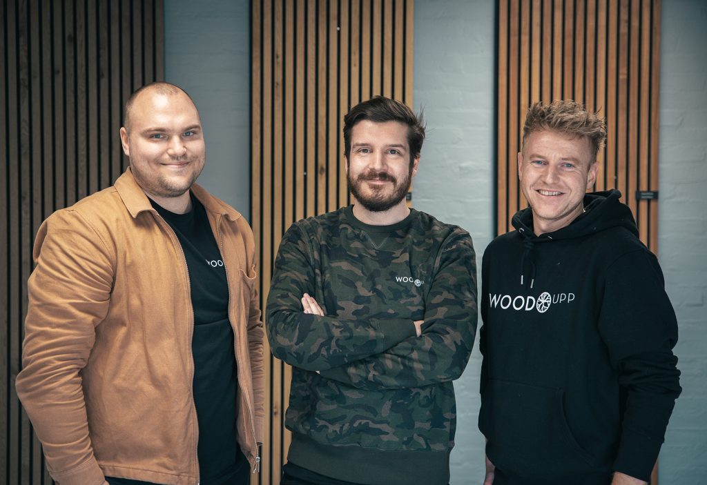 In 2019 was Mads zo druk dat hij het niet meer alleen kon bolwerken. Dus besloot hij nieuwe partners, Mikkel (rechts) en Troels (links), aan boord te brengen en ze namen de eerste werknemers aan. Aan het einde van het jaar werkten 5 mensen fulltime bij WoodUpp.