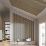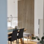 Het Akupanel kan worden gebruikt om prachtige lamellenwanden en plafonds te creëren, wat een moderne uitstraling aan de kamer toevoegt.