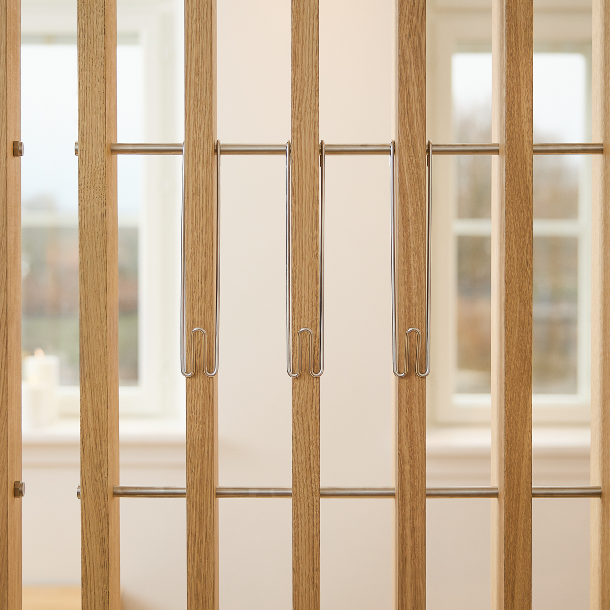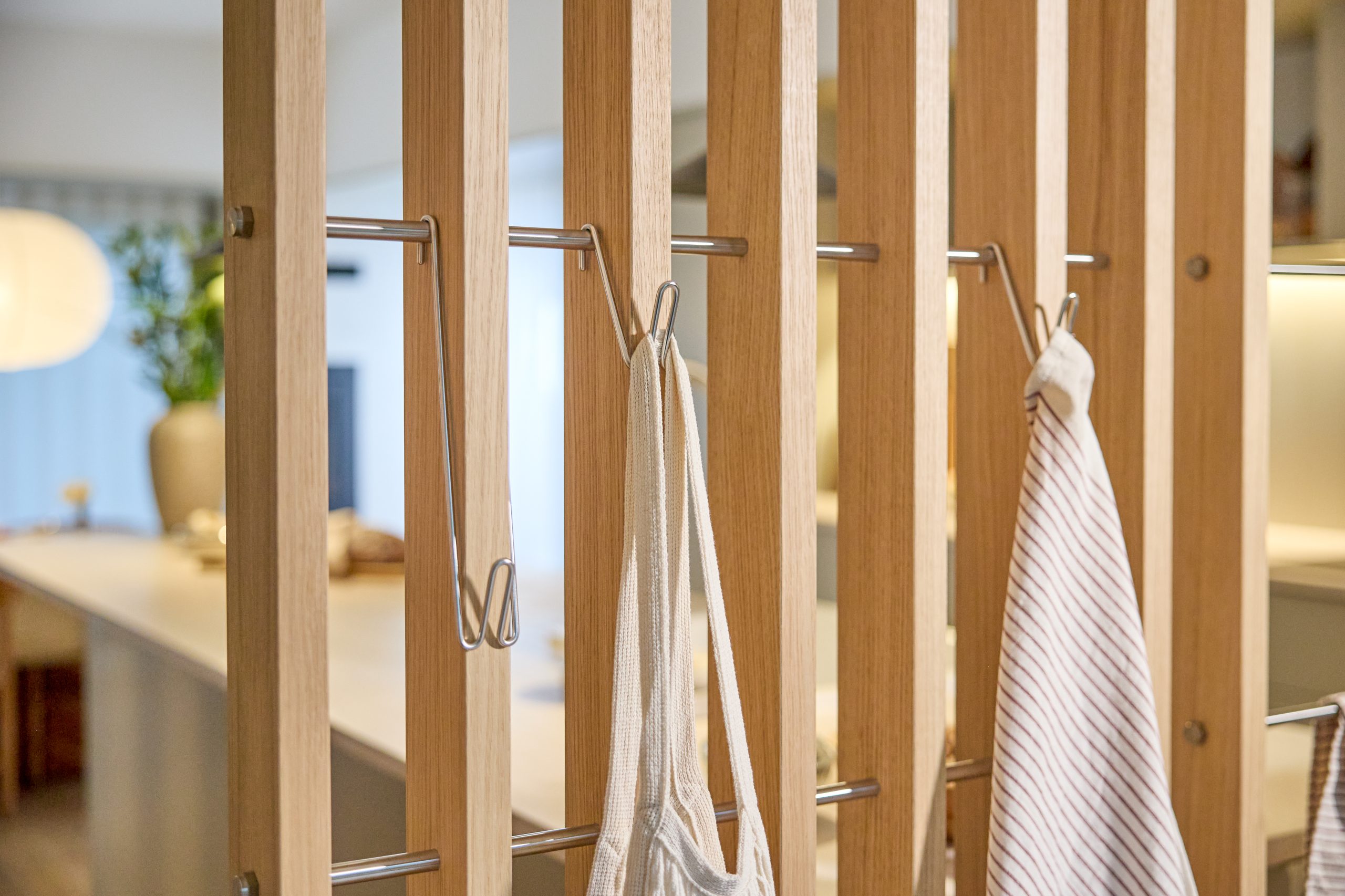 Alva is ontworpen voor EMBRACE | BM1 en is perfect voor het ophangen van sleutels, accessoires of een jas. Het draadontwerp houdt dingen zichtbaar en gemakkelijk bereikbaar. De kortere haak voegt zich stilletjes in de opstelling, terwijl de langere versie je meer ruimte biedt wanneer je het nodig hebt. Beide zijn gemaakt om precies daar te worden gebruikt waar je ze nodig hebt.