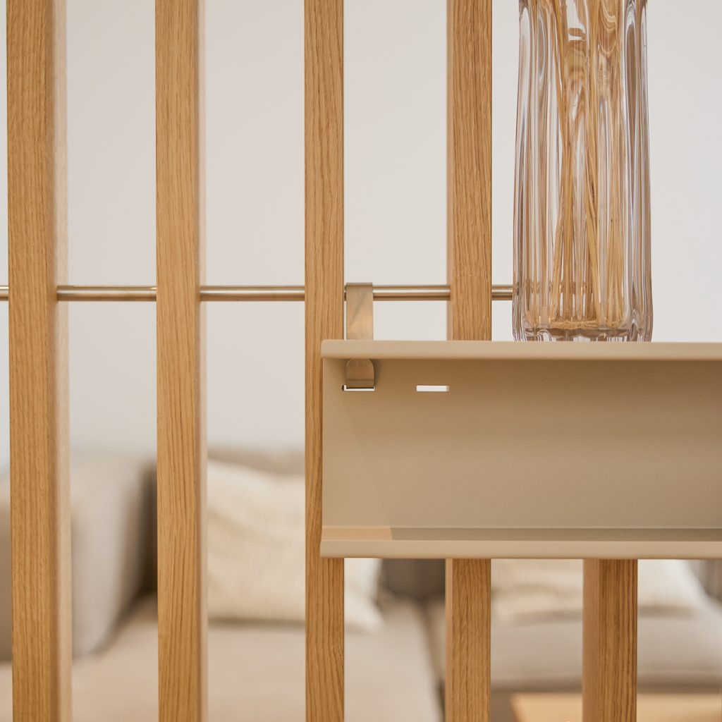 Gemaakt van roestvrij staal en hoogwaardig poedergecoat staal, past het naadloos in de Embrace-structuur en houdt alles open, rustig en doordacht.