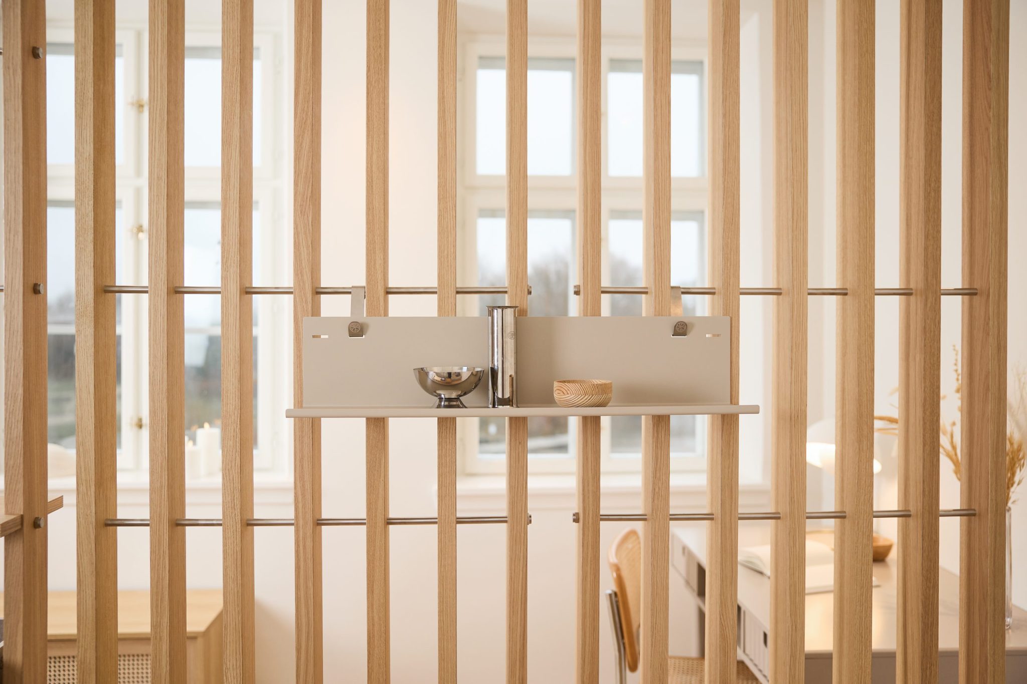 Voeg een gebalanceerd Japandi gevoel toe met deze lichte, open plank.