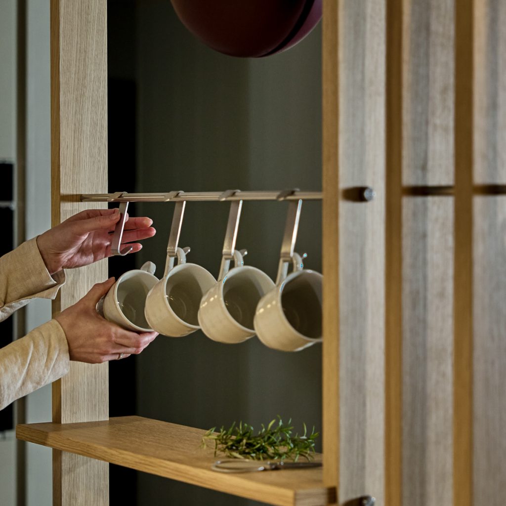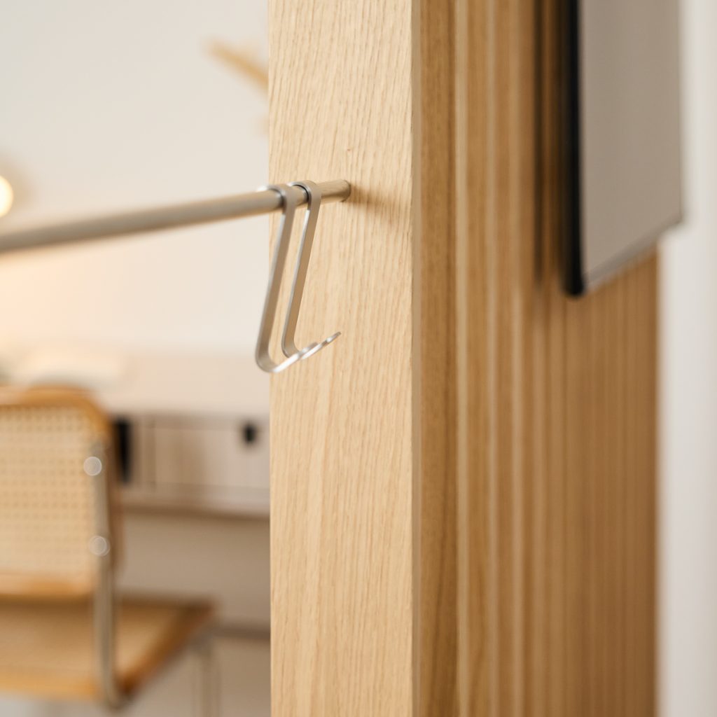 De Alva S-Hook voegt flexibiliteit toe aan je Embrace-systeem. Het biedt alledaagse items een eenvoudige plek om op te hangen en maakt het gemakkelijk om je ruimte aan te passen naarmate routines veranderen — zonder gereedschap of installatie.