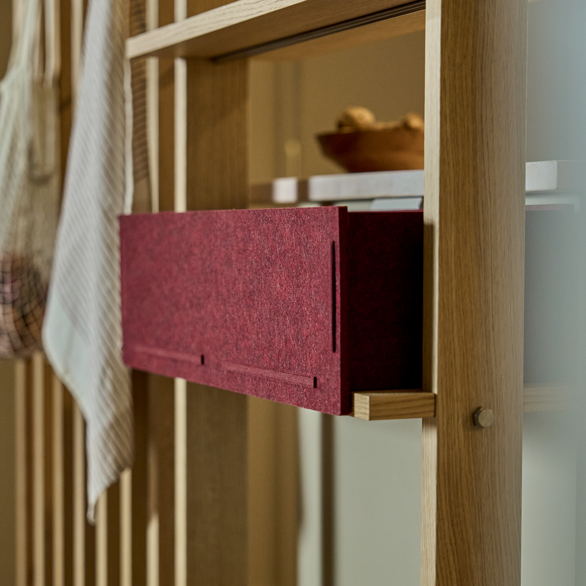 De Vigg Felt Box is gemaakt om perfect op de Lova Wood Shelf te passen. De grootte, het zachte vilt en de schone randen zitten natuurlijk op de plank — waardoor open opslag verandert in een kalme, georganiseerde ruimte die gemakkelijk te leven is.