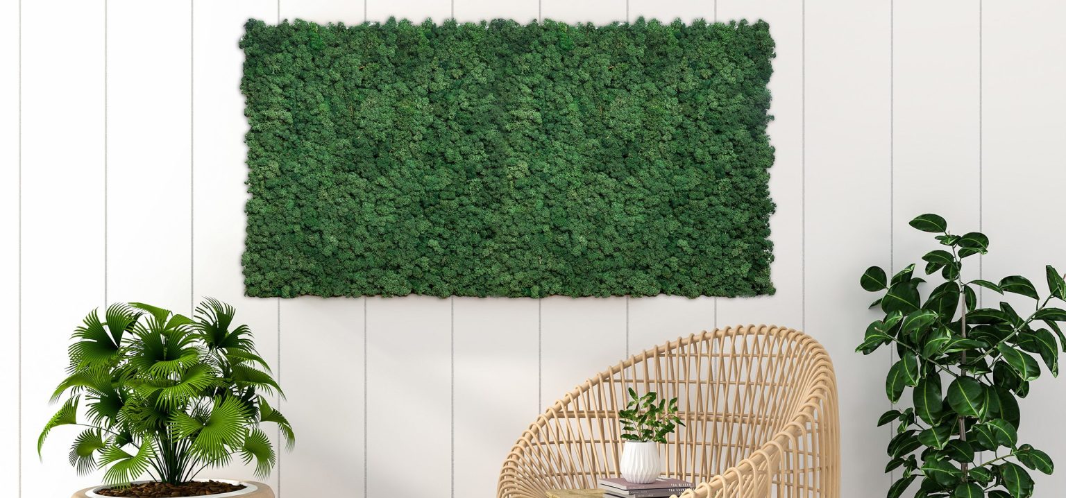 Daarnaast is het allergievriendelijk. Het mos is niet langer levend en heeft daarom geen onderhoud, water of zonlicht nodig. Het trekt geen stof of insecten aan.