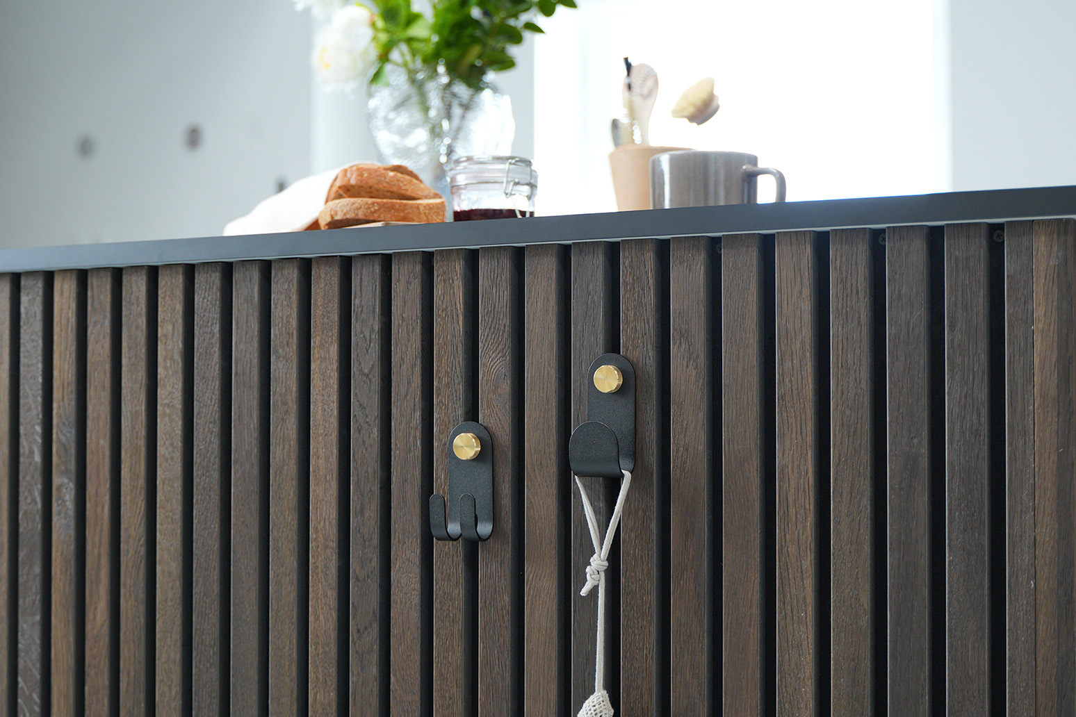 Kleine details. Groot verschil. De nieuwe haken brengen elegante functionaliteit naar je Akupanels – beschikbaar als enkele of dubbele versie, in zwart met messing of beige met roestvrij staal. Binnen enkele seconden gemonteerd en draagt tot 10 kg. Geen gereedschap nodig. Geen gedoe.