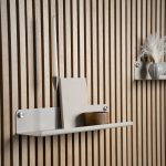 De brede wandplank is gemaakt van gepoedercoat staal en wordt aan je Akupanel bevestigd met onze speciaal ontworpen CREATE-beugel.